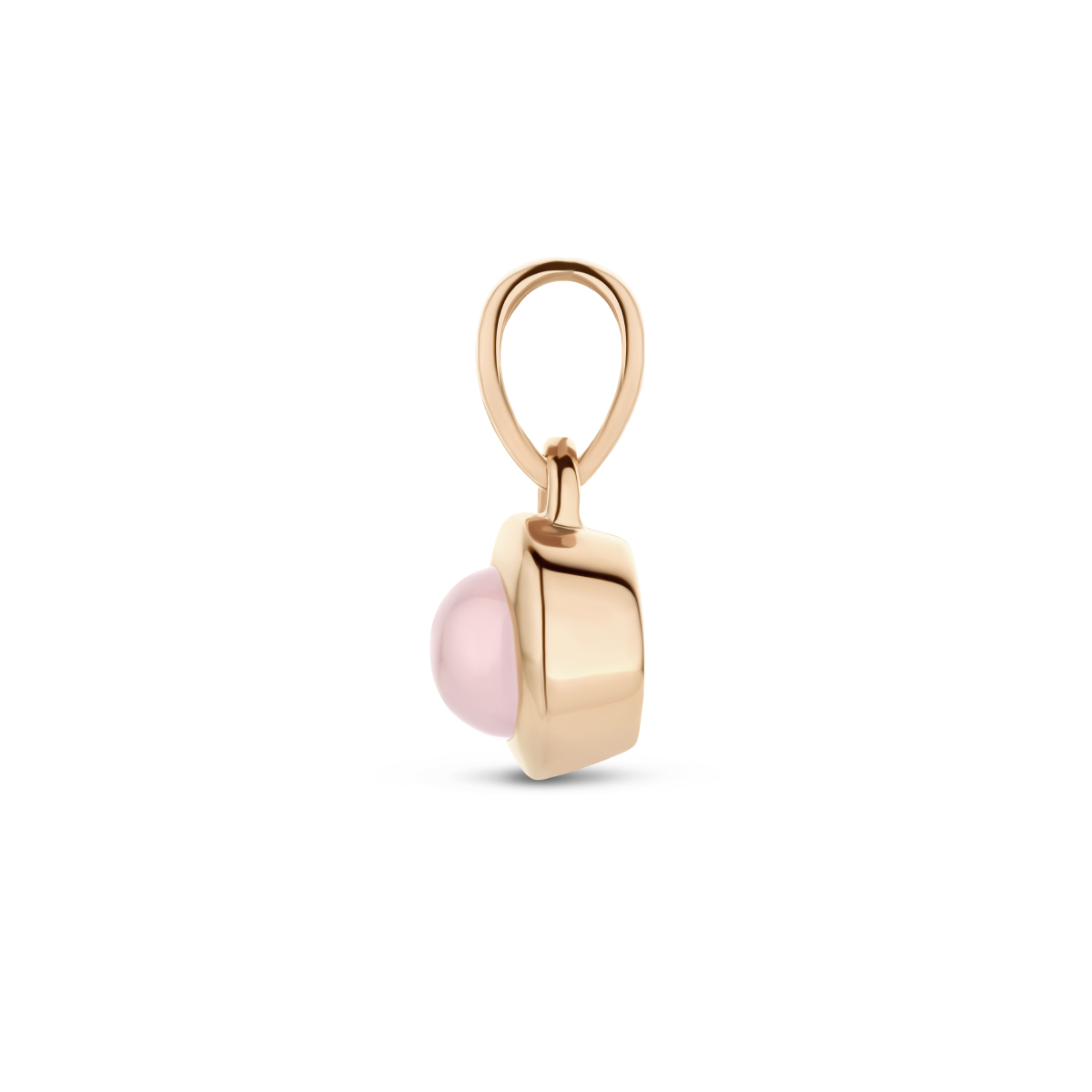 14k Rosegouden hanger uitgevoerd met rozenkwarts. De hanger heeft een totale hoogte van 15mm.
