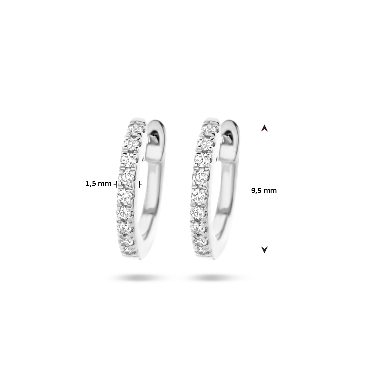 14k Witgouden klapoorringen uitgevoerd met een schitterende diamant rij. De klapoorringen hebben een afmeting van 9.5x1.5mm en het diamantgewicht is 0.06ct (2x 0.03ct).