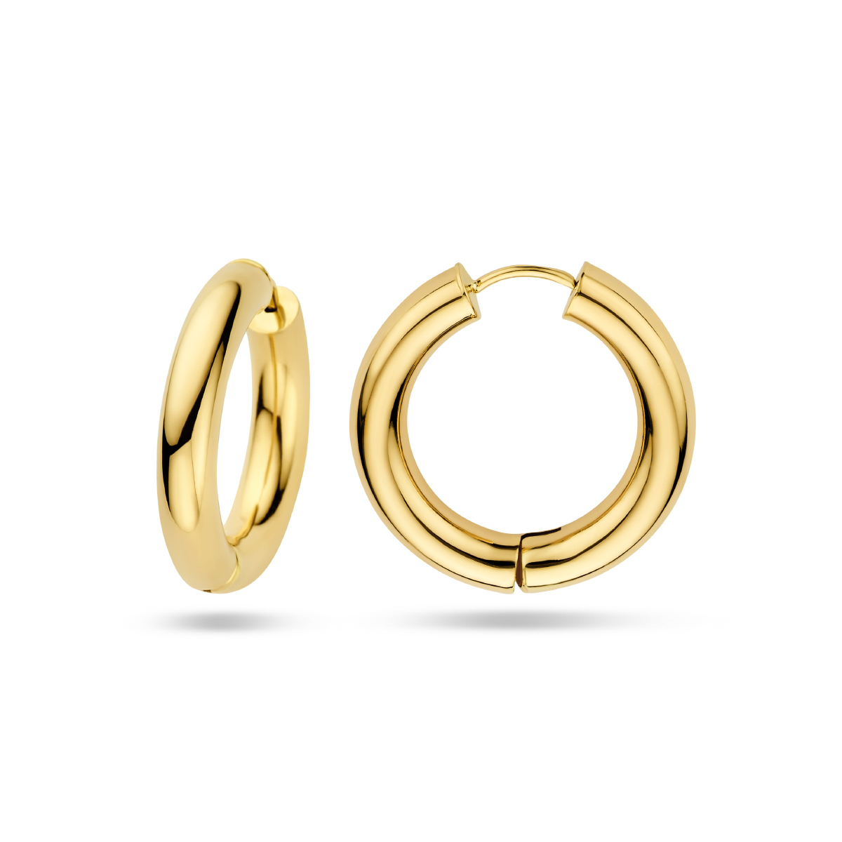 Beschrijving: Geelgouden klapcreolen met een ronde buis.