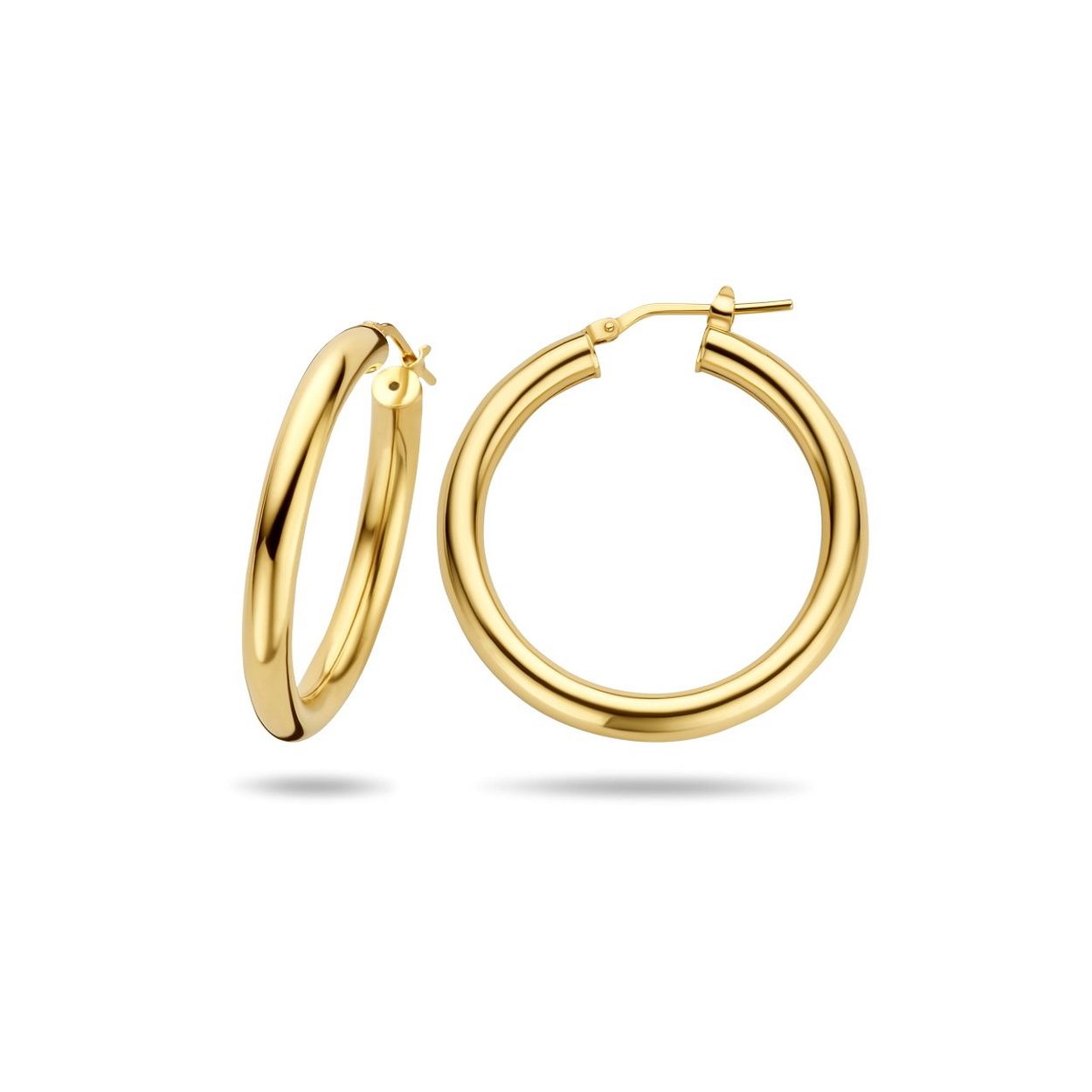 Geelgoud op 925 zilveren oorringen. De oorringen hebben een dikte van 4mm en een diameter van 35mm.